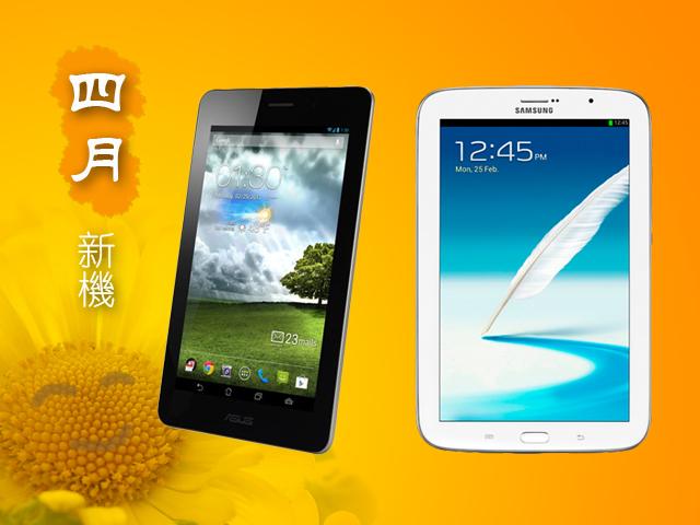2013 年 4 月平板電腦新機市場雖不如手機市場那樣爭奇鬥豔,僅有 ASUS Fonepad 與 SAMSUNG GALAXY Note 8.0 兩款平板「唱雙簧」。ASUS Fonepad 新增 3G 通話功能,可讓平板電腦瞬間變為手機使用,手機、平板一機可得;內建的 4,270mAh 容量電池擁有長達 9 小時的高續航能力。而 SAMSUNG GALAXY Note 8.0 的外觀設計、內在規格、影音體驗都相當不錯,還有「S Pen 觸控筆」、「S Note」、「Multi-Window 多重視窗」等多款特色工具都為其增色不少。兩款平板各有韻味,端看您如何選擇!